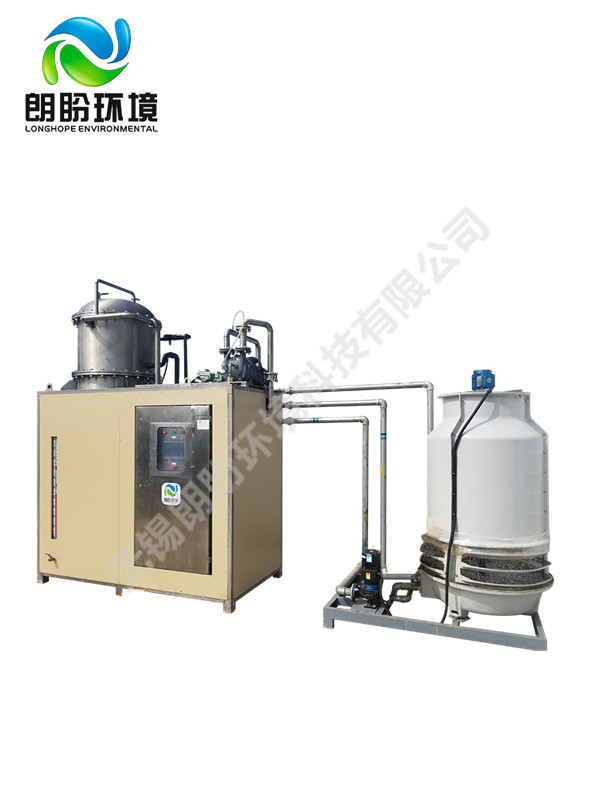低溫蒸發(fā)結(jié)晶器的原理是物料的沸點(diǎn)隨著壓強(qiáng)的降低而降低。低溫節(jié)能濃縮設(shè)備整體保持真空狀態(tài),蒸發(fā)室的真空度約為95%~97%,在此壓強(qiáng)下水的沸點(diǎn)為35℃~37℃,系統(tǒng)無(wú)需配備進(jìn)料泵,利用蒸發(fā)室的負(fù)壓將物料吸進(jìn)蒸發(fā)室,通過(guò)強(qiáng)制循環(huán)方式將物料循環(huán)霧化,傳輸至換熱器上,物料中水分被蒸發(fā),物料連續(xù)循環(huán)霧化,通過(guò)蒸發(fā)室液位自動(dòng)補(bǔ)料,濃度達(dá)到要求后作為濃縮液排出設(shè)備。濃縮液一般粘度較大,需采用泵抽出。